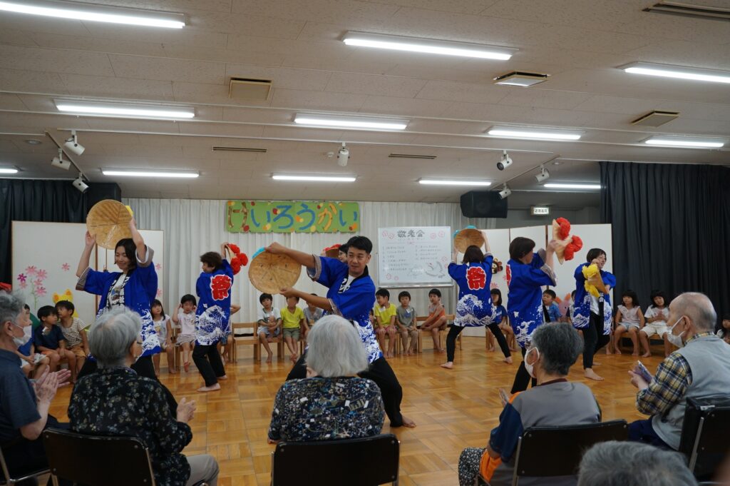 9月10日、11日の2日間、併設の名東パラダイスの皆さんをお招きして、子どもたちと職員でご長寿をお祝いしました。最高齢は、100歳のお二人。ふれあいあそびをしたり、一緒にうたったり、楽しい時間を過ごしました。ある方は、子どもたちとふれあい「私の息子の4歳の時のことを思い出したわ。ありがとう。」と話してくださいました。
