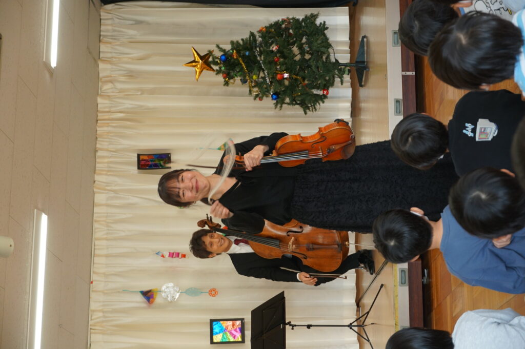 12月19日(金)、セントラル愛知交響楽団の堀田裕司さん、絵美さん(かに・いるか組父母)、加藤恵利子さん(声楽ソプラノ)によるうたとヴァイオリンとチェロのお楽しみコンサートがありました。