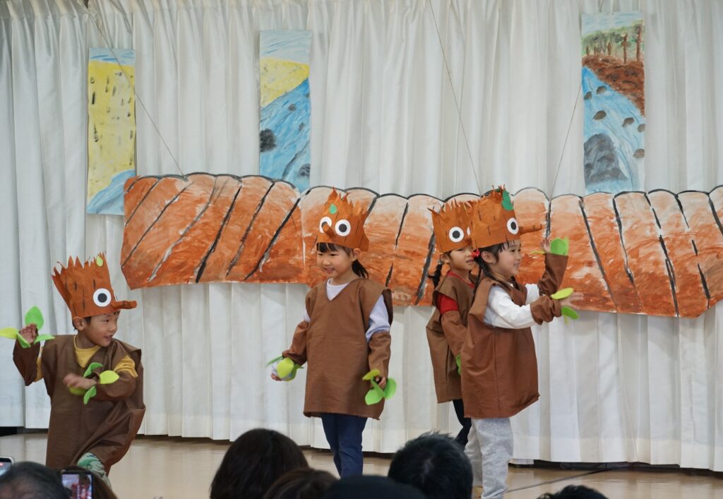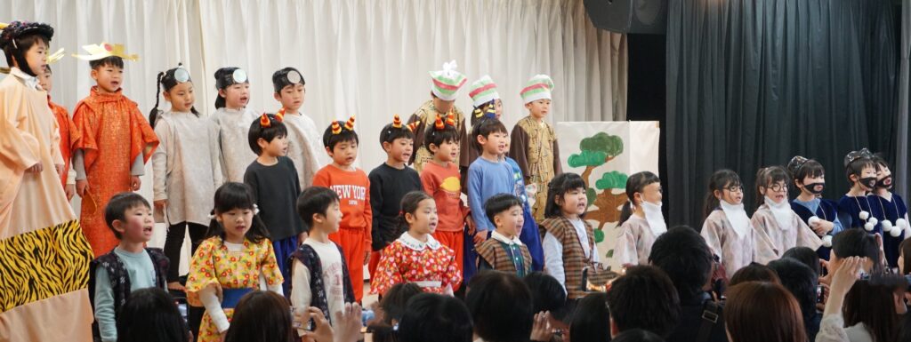 劇の最後にみんなで歌う子どもたち。(5歳児くじら組)